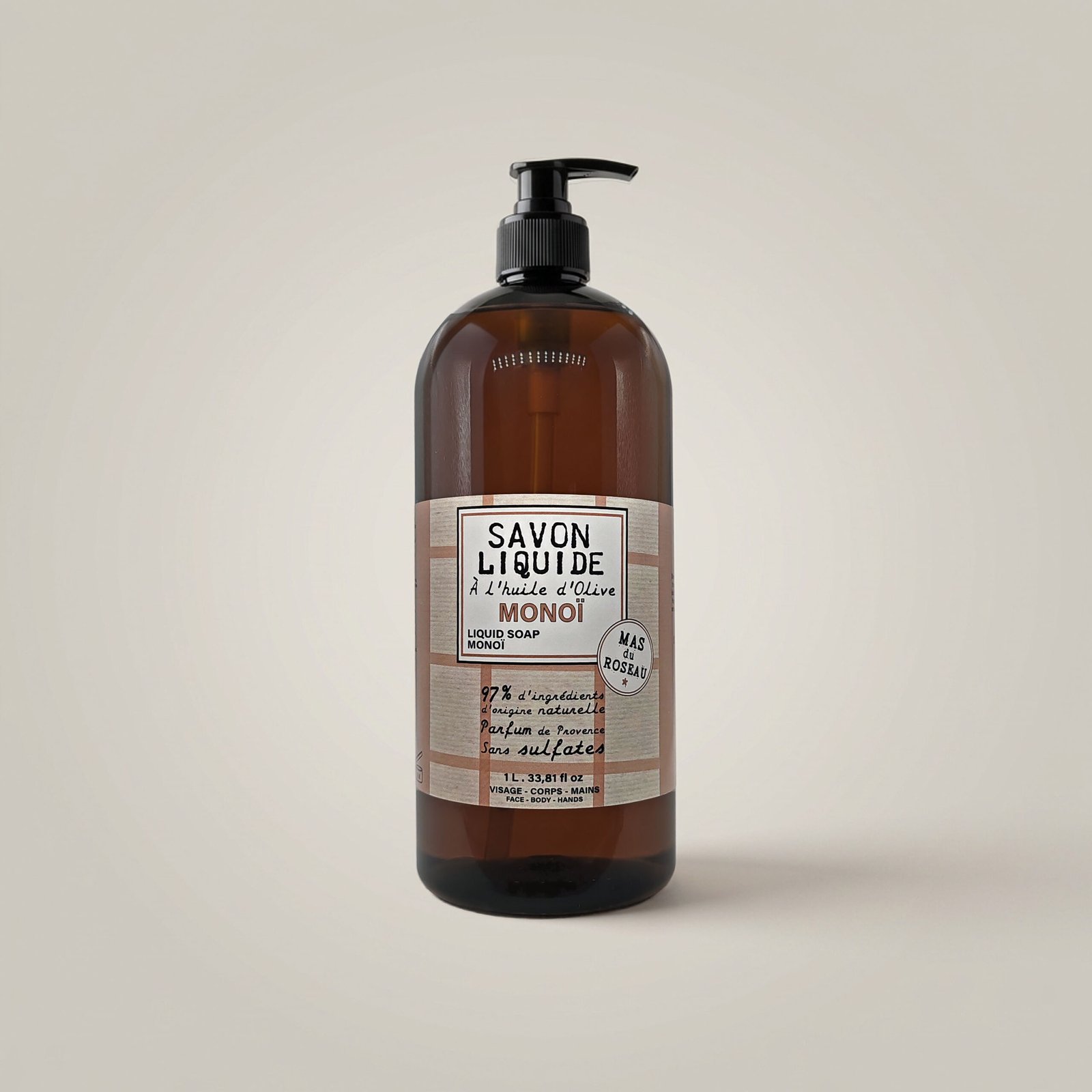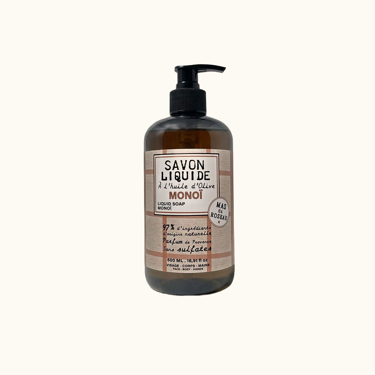Le savon liquide Monoï de la gamme Philosophie est un savon liquide parfumé, saponifié à partir d’huiles végétales et cuit au chaudron selon un procédé artisanal inspiré de la tradition du savon de Marseille.